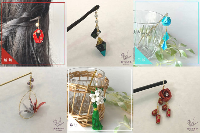 「どこか懐かしい、けれど、どこにもない和モダン」をコンセプトに、日本伝統の折り紙を 使ったかんざしやヘアクリップをはじめ、ピアスやイヤリング等のアクセサリーまで、 幅広く制作しています。初詣に卒業式、花火大会などの和装にはもちろん、ちょっと おしゃれな普段着にもおすすめです。自分へのご褒美、贈り物やギフトとしても人気です。