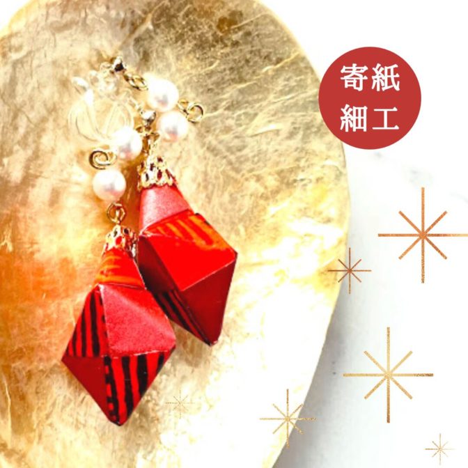 【送料無料】雫型イヤリング 寄紙細工 [朱色]