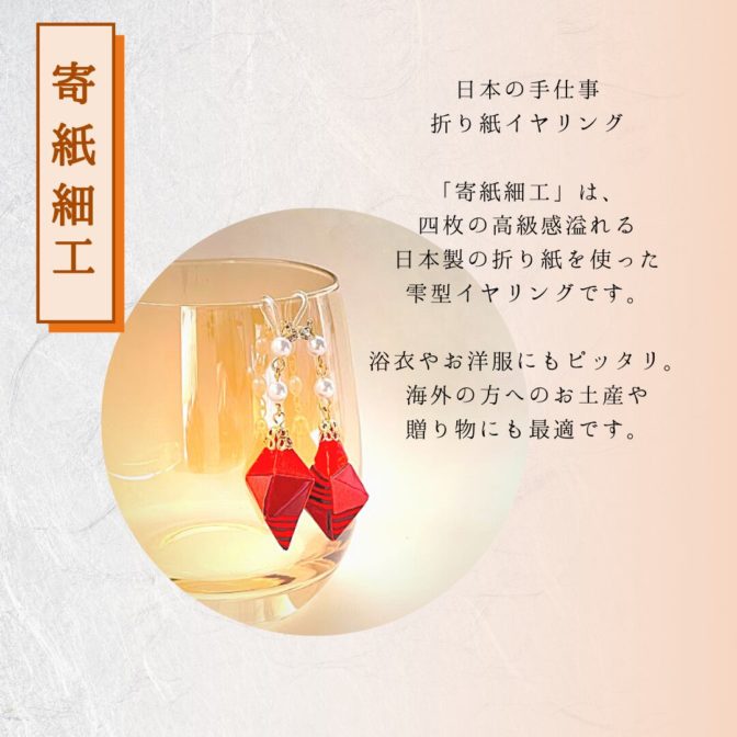 「どこか懐かしい、けれど、どこにもない和モダン」をコンセプトに、日本伝統の折り紙を使ったかんざしやヘアクリップをはじめ、ピアスやイヤリング等のアクセサリーまで、幅広く制作しています。初詣に卒業式、花火大会などの和装にはもちろん、ちょっとおしゃれな普段着にもおすすめです。自分へのご褒美、贈り物やギフトとしても人気です。